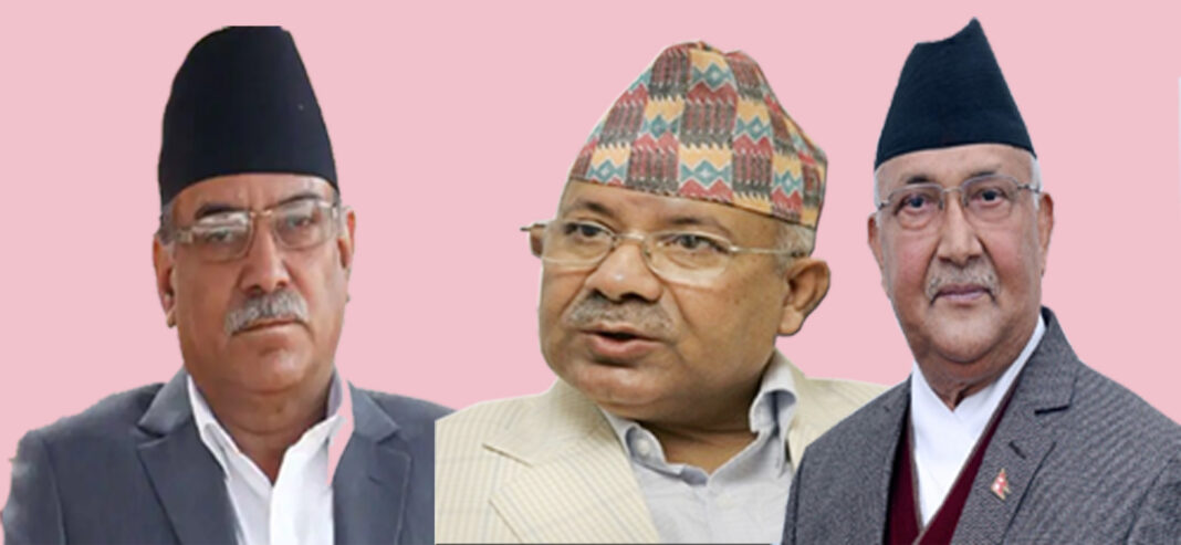 काठमाडाैं ।। नेकपाको विवाद मिलाउन आजदेखि त्रिपक्षीय संवाद हुने भएको छ । दुई अध्यक्षको छलफलबाट निस्कर्ष आउन नसकेपछि आज त्रिपक्षीय छलफल हुन लागेको हो । भोलि शुक्रबार स्थायी कमिटी बैठकअगाडि आज नेकपामा त्रिपक्षीय संवादबाट विवाद समाधान गर्न खोजिएको छ । डेढ सातादेखि लगातार संवादमा रहेका प्रधानमन्त्री शर्मा केपी ओली र अध्यक्ष पुष्पकमल दाहाल प्रचण्डको छलफलमा आज वरिष्ठ नेता माधवकुमार नेपाल पनि सहभागी हुनुहुनेछ । पार्टी प्रवक्ता नारायणकाजी श्रेष्ठका अनुसार आज अध्यक्षद्वय ओली र प्रचण्डबाहेक वरिष्ठ नेता नेपालबीच सहमति जुटाउने प्रयासस्वरूप वार्ता हुनेछ । १० असारबाट सुरु भएको स्थायी कमिटी बैठकमा प्रचण्ड–नेपाल समूहले प्रधानमन्त्री र पार्टी अध्यक्ष दुवै पदबाट ओलीले राजीनामा दिनुपर्ने माग राख्दै आएका छन् । एक्लाएक्लै भइरहेको दुई अध्यक्षको छलफलमा हिजो महासचिव विष्णु पौडेल र नेता जनार्दन शर्मा पनि सहभागि हुनुभएको थियो । दुई अध्यक्षबीच लेनदेनमा सहमति नभई विधी अनुसार समाधान खोज्नुपर्ने नेपाल पक्षमा रहेका स्थायी कमिटीका सदस्यहरूको निस्कर्ष छ ।