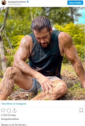 एजेन्सी ।। बलिउड चर्चित अभिनेता सलमान खान लकडाउनका कारण आफ्नै पनवेल फार्महाउसमा आफनो समय बिताइरहेका छन् । उनले मंगलवार सामाजिक सञ्जाल इन्टाग्राममा एक तस्बिर शेयर गरेका छन् । तस्बिरमा उनी एक किसान जस्तो देखिएका छन् ।