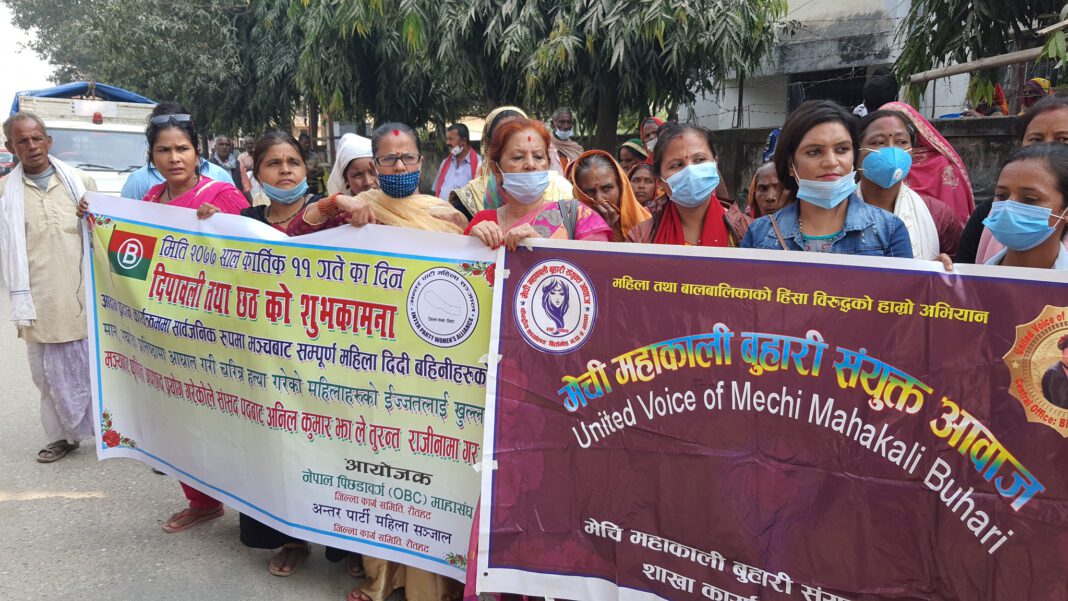 राैतहट ।। जनता समाजवादी पार्टीका निर्वाचन विभाग प्रमुख एवं रौतहट निर्वाचन क्षेत्र नम्बर १ का प्रत्यक्ष निर्वाचित प्रतिनिधि सभा सदस्य अनिल कुमार झा को विरुद्धमा रौतहट जिल्लाका महिलाहरु विहिवार सदरमुकाम गौरमा विरोध प्रदर्शन गरेका छन !