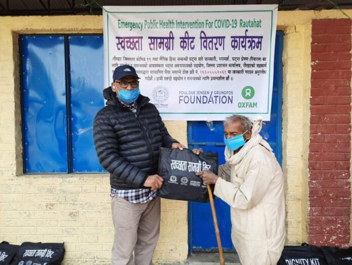 अक्सफाम नेपालको सहयोग आरडिसी नेपालको आयोजनामा रौतहटको राजदेवी नपा ९ का १ सय ६३ परिवार लाई शुक्रवार स्वस्च्छता सामाग्री बितरण गरीएको छ ।