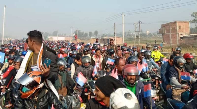 जनकपुरको मुजेलियाबाट निकालिएको मोटरसाइकल र्याली नगरको विभिन्न भाग परिक्रमा गर्दै जनक चोकमा गएर टुँगिएको छ । केही बेरपछि उनीलगायत प्रदेश स्तरिय युवा संघका नेताहरूले उद्योग वाणिज्य संघको हलमा सम्बोधन गर्ने कार्यक्रम छ ।