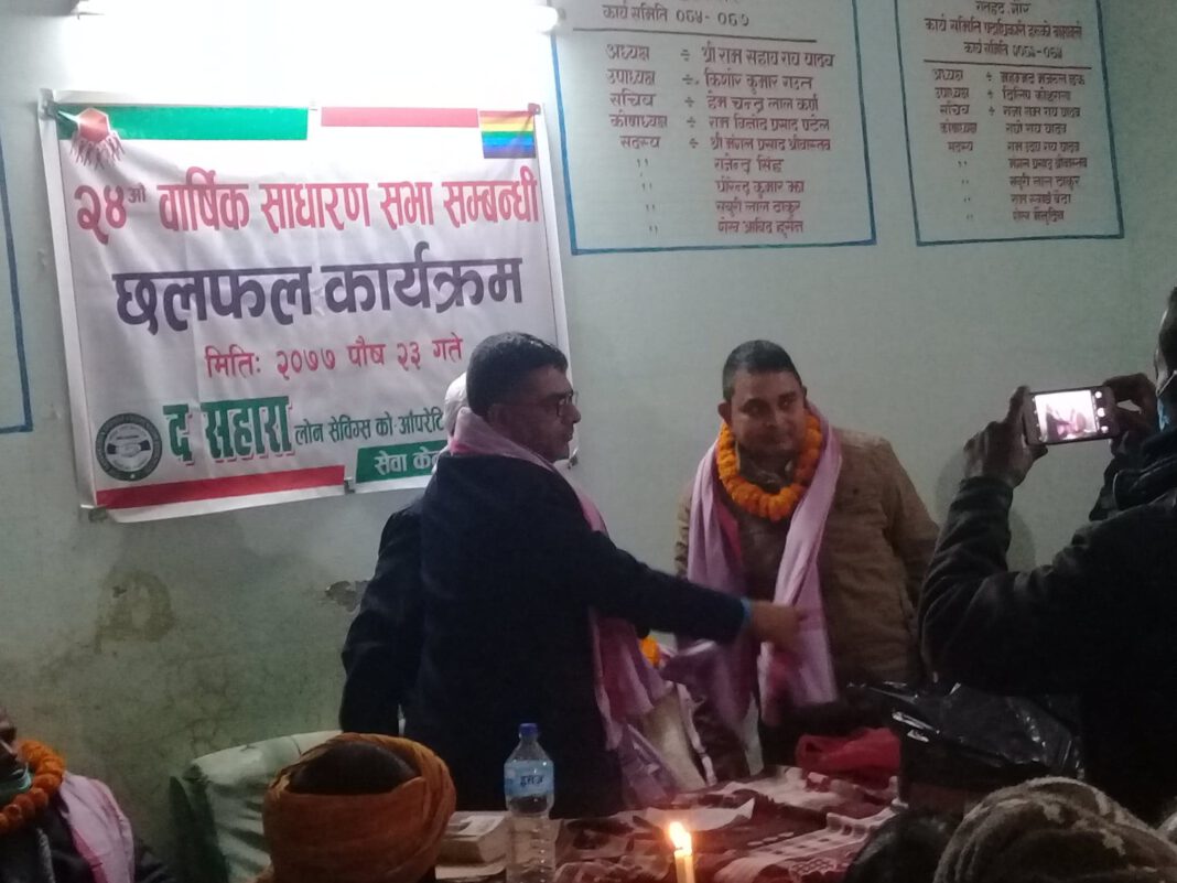 रौतहट ।। द सहारा लोन सेविंग्स को आपरेटीभ सोसाइटी लिमिटेडको २४ औं वार्षिक साधारण सभाको बंठक सम्पन्न भएको छ । विहिवार रौतहटको बार एसोसिएसन भवनमा साधारण सभाको बंैठक सम्पन्न भएको हो ।