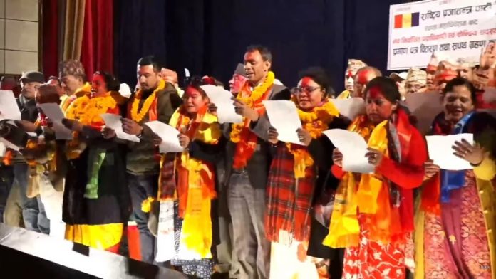 प्रमाणपत्र वितरण तथा शपथ ग्रहण कार्यक्रममा थापा भने उपस्थित थिएनन्।