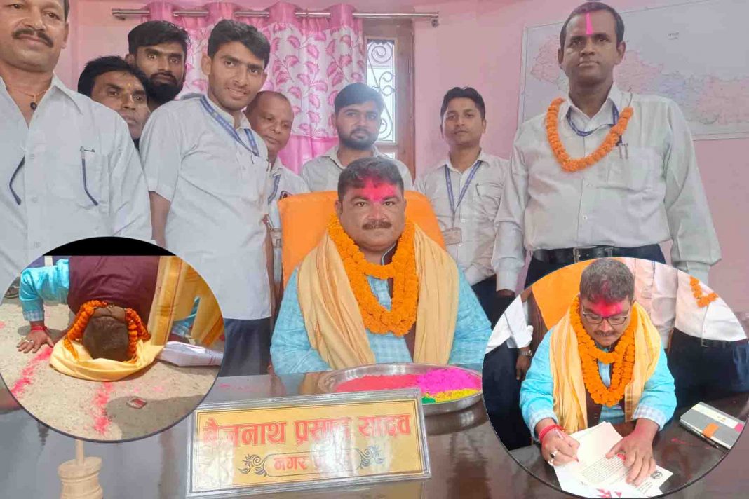 रौतहट ।। रौतहटको माधवनारायण नगरपालिकाका नवनिर्वाचित मेयर बैजनाथ प्रसाद यादवले बुधवार पदभार ग्रहण गरेका छन । मेयर बैजनाथ प्रसाद यादव नगरपालकाको कार्यलयको प्रवेशद्धार ढोग्दै आफ्ना कार्यभार सम्भालनु भएको छ । स्थानीय तहको निर्वाचनमा नेपाली कांग्रेसकाबाट निर्वाचित यादवले कार्यभार सम्हालदै आफना पहिलो नीति तथा कार्यक्रममा नगर कार्यपालिका कार्यालयको प्रशासनिक भवन निर्माणका लागि आवश्यक पर्ने बजेट छुटयाउने योजना रहेको उनले बताए ।