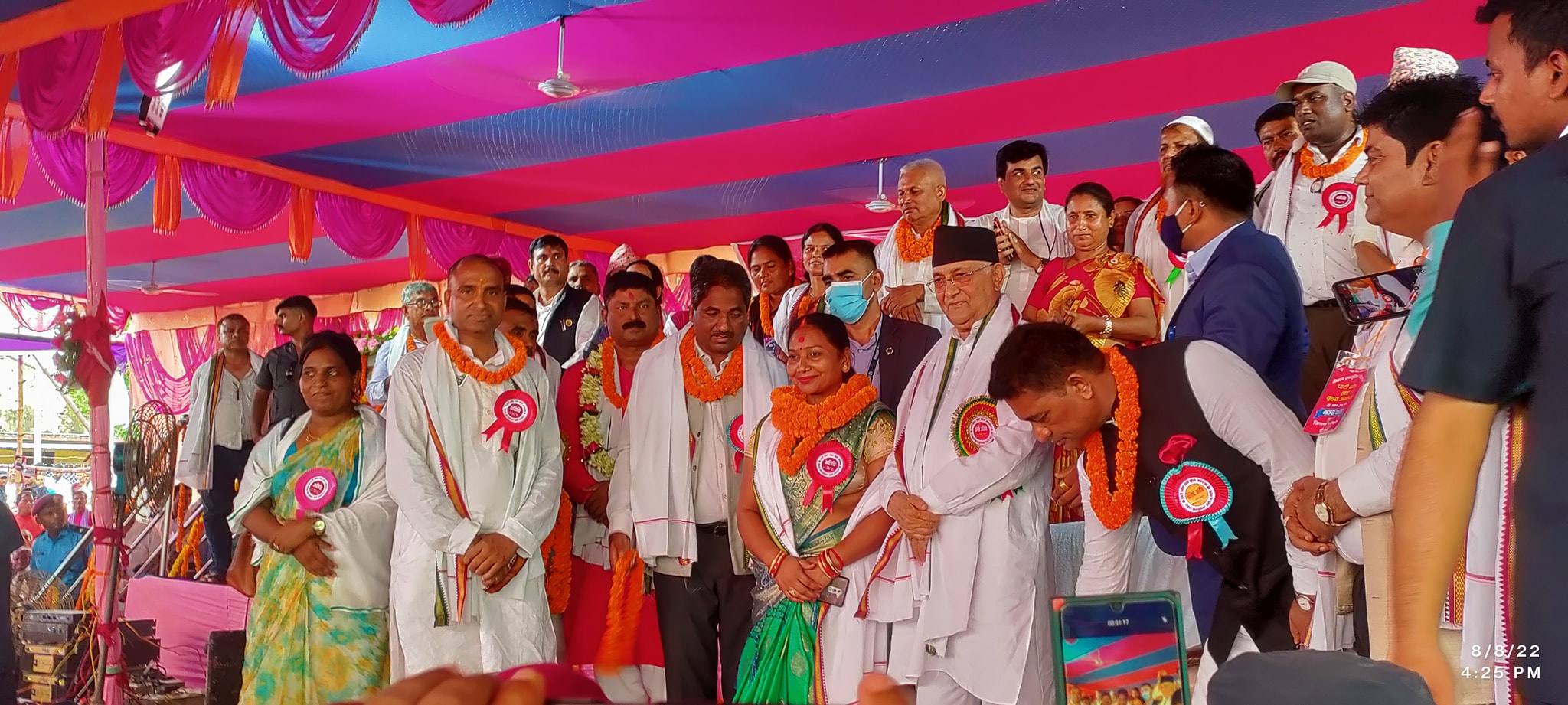 खÞराब मौषमको कारण ढिलो आएका पूर्व प्रधानमंत्री ओलीले लोकतान्त्रिक समाजवादी पार्टीका महासचिव एवं पूर्व नगर प्रमुख अजय कुमार गुप्ता , नेपाली कांग्रेसका जिल्ला सचिव राजेश चौधरी , पूर्व संविधान सभा सदस्य चन्दन जैसवाल गढ़ीमाई नगरपालिकाका पूर्व उपप्रमुख सुभद्रा गुप्तालाइ पार्टी प्रबेश गराएका छन ।