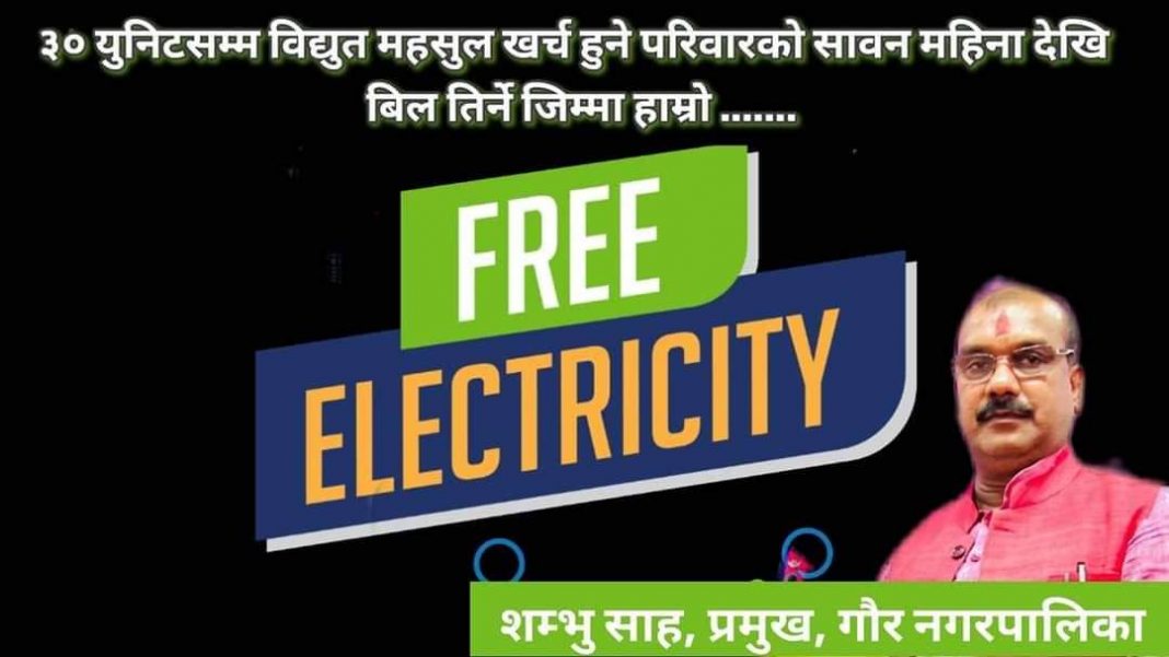 निशुल्क विद्युत योजनाको लाभ लिन २०७९ आषाढ मसान्तसम्मको बिल भुक्तानी गरेको हुनु पर्नेछ | ३० युनिट भन्दा बढी खपत हुने सेवाग्रहीको हकमा यो सहुलियत तत्काल लागु नहुने नगरपालिकाले जनाएकाे छ | यो सुविधा लिन साउन महिनाको विललाई मिटर रिडिंग भए लगतै सम्बंधित वडा कार्यालय वा गौर नगरपालिकामा जम्मा गराउन गौर नगरपालिकाले अनुरोध गरेकाे छ । जनताकाे आवश्यकतालाई महसुस गर्दै नगर प्रमुख साहले गरेकाे यस्ता किसिमकाे घाेषणाकाे चाैतर्फी प्रशंसा हुँदै छ । साथै नगरमा खुशियाली छाएको छ ।