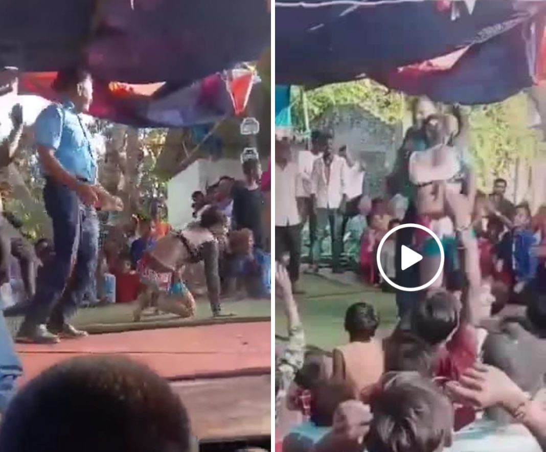 रौतहट ।। रौतहटको गढीमाई नगरपालिका ६ धरमपुरमा कृष्ण जन्माष्टमीको अवसरमा स्थानीयले आयोजना गरेको एक कार्यक्रममा बर्दीमा रहेका प्रहरी नायव निरीक्षक (सई) शनिबार दिउसो मञ्चमै पुगेर नाचेको भिडियो अहिले सामाजिक सञ्जालमा भाइरल बनेको छ ।बर्दी लगाएर स्टेजमा अश्लिल हाउभाउसहित नृत्य गरेपछि प्रहरी आचरणविरुद्ध कार्य गरेको भन्दै जिल्ला प्रहरीले सईलाई आइतबार चौकीको ईन्चार्जबाट हटाएर अनुसन्धान थालेको छ ।
