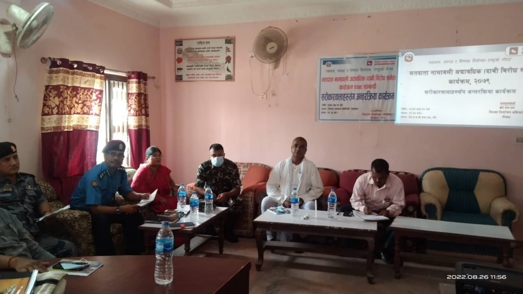 मङ्सिर ४ मा हुने संघीय तथा प्रादेशिक निर्वाचनका लागि मतदाताहरुको नामावली संशोधन सुधार गर्ने उदेश्यले आयोजना गरिएको कार्यक्रममा जिल्ला निर्वाचन अधिकारी छोटेलाल दासले मतदाता नामावलीमा भएका त्रुटि सच्याउन र मृत्यु भएका व्यक्तिको नाम हटाऊँनका लागि निर्वाचन आयोगले निर्धारण गरेको समय भित्र दावी विरोध गर्न सवैलाइ आग्रह गरे ।