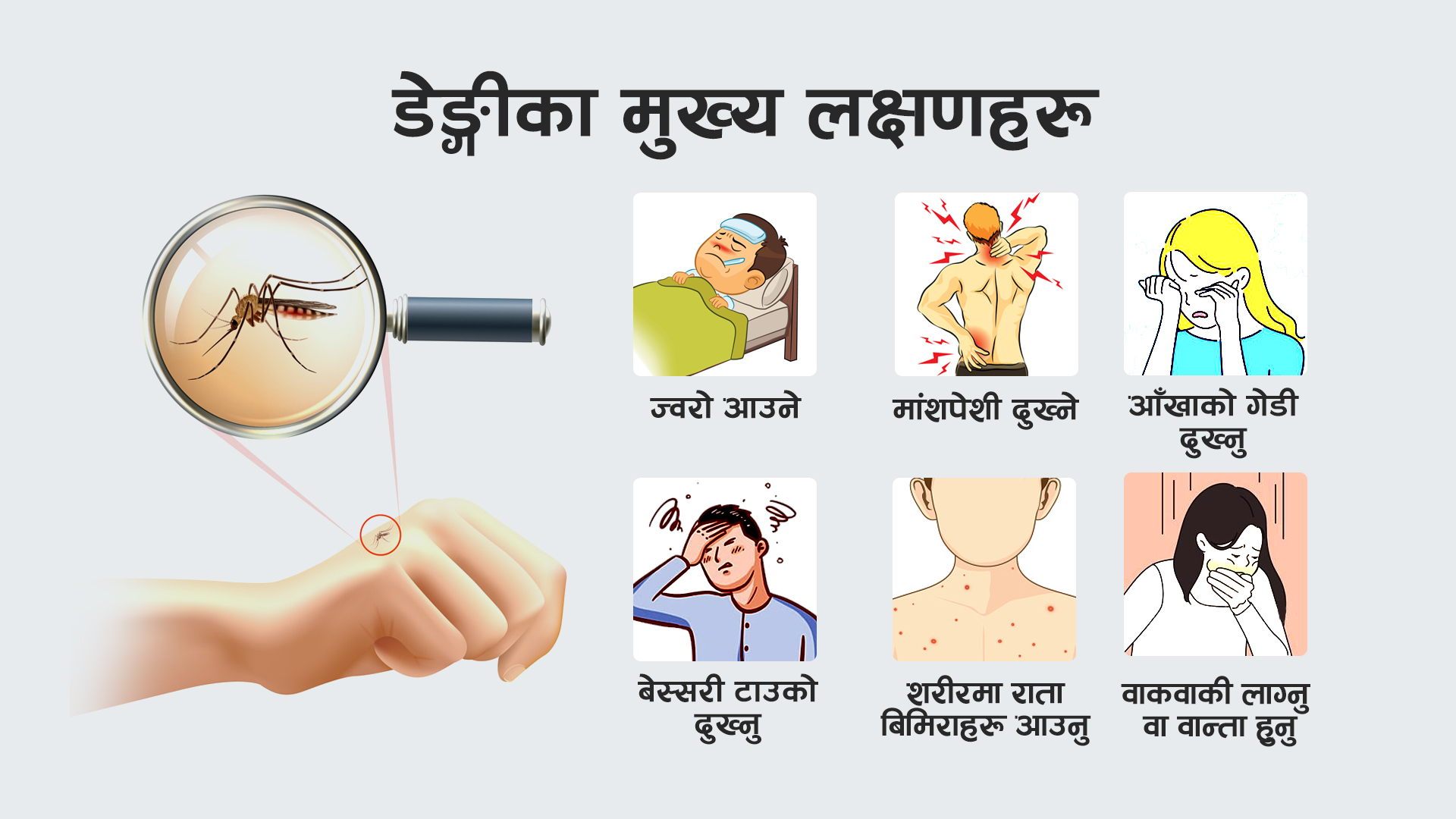 – लामखुट्टेको टोकाइबाट बच्नु र लामखुट्टेको वृद्धि रोक्नु नै डेंगुबाट बच्ने उत्तम उपाय हो ।