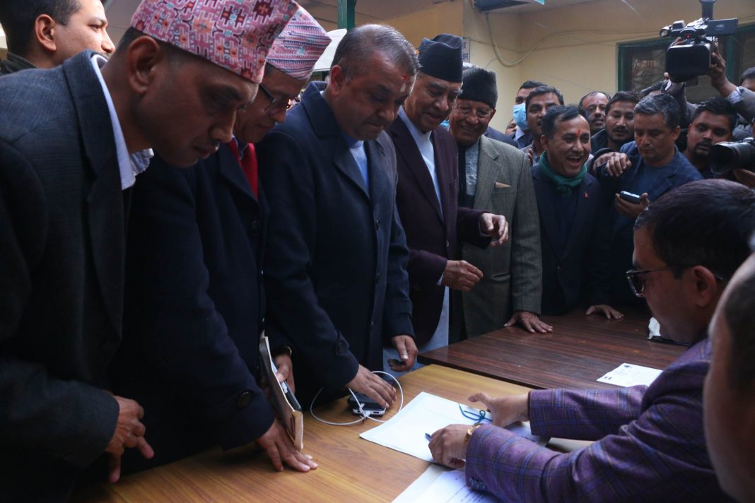 काठमाडाैं ।। नेपाली कांग्रेस संसदीय दलको नेताका लागि सभापति शेरबहादुर देउवा र महामन्त्री गगन थापाले उम्मेदवारी दर्ता गराउनुभएको छ ।