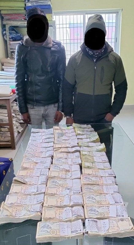 वीरगन्ज महानगरपालिका-१६ नगवा बस्ने ३४ वर्षीय विकास साह र वडा १८ इनर्वा मनियारी बस्ने १९ वर्षीय सुवासकुमार साहलाई प्रहरीले पक्राउ गरेको हो। मंगलबार वीरगन्ज महानगरपालिका-८ घण्टाघरस्थित सडकमा उनीहरू सवार भारतीय नम्बरको स्कुटरमा प्रहरीले चेक गरेको थियो । चेक गर्ने क्रममा पछाडि सवार सुवासकुमार साहले बोकेको झोलाबाट साढे २२ लाख नेपाली रुपैयाँ फेला पारेको हो। स्रोत नखुलेपछि प्रहरीले उनीहरूलाई पक्राउ गरेको हो ।