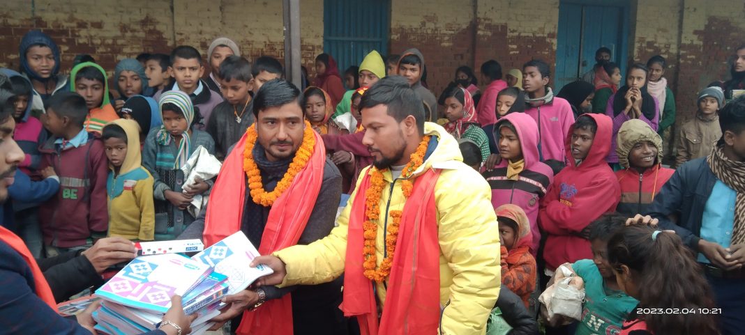 दलित ,गरीव ,असहाय परिवारका १५० जना बालबालिकाको अध्यनको लागि शैक्षिक सामग्री प्रदान गरेको क्लबका अध्यक्ष विक्रम यादवले बताएका छन । शनिवार आयोजित एक कार्यक्रम विच क्लवका अध्यक्ष यादवले शिक्षक नीरज साह लाइ उक्त शैक्षिक सामग्री हस्तांतरण गरेका हुन ।