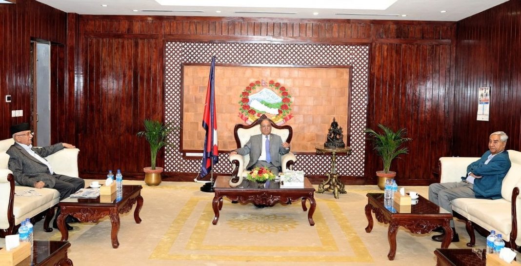 काठमाडाैं ।। प्रमुख शीर्ष तीन दलका नेताबीच बालुवाटारमा भेटवार्ता भएकाे छ। बजेट, नीति तथा कार्यक्रम, संसदीय समिति गठन लगायतका विषयमा तीन दलका शीर्ष नेताबीच छलफल भएको छ ।