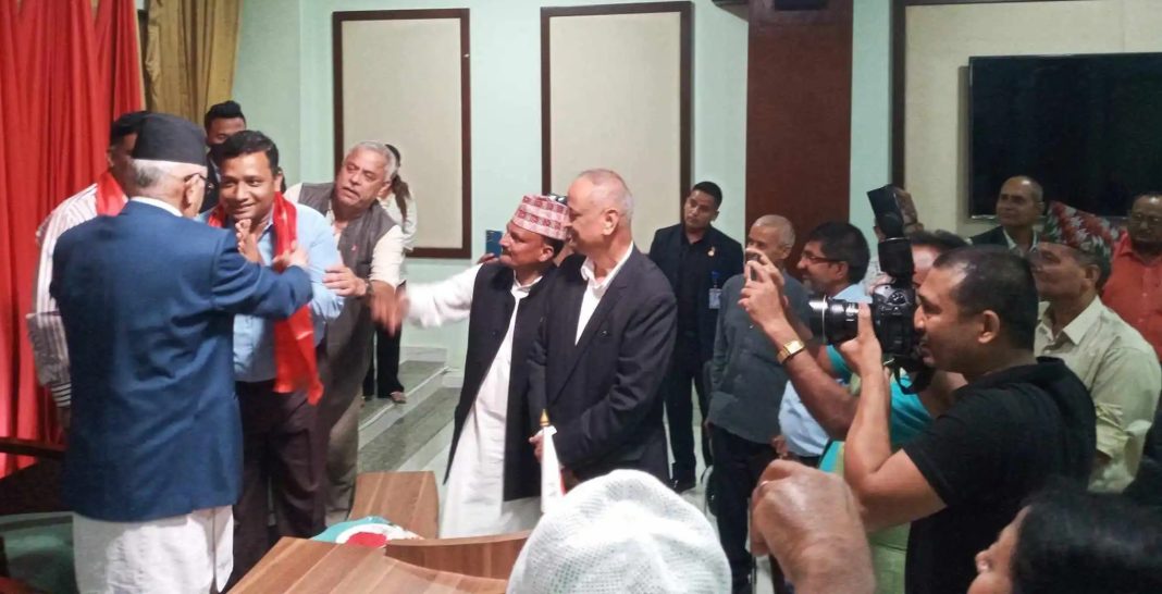 काठमाडौँ ।। नेकपा माओवादी केन्द्रका केन्द्रीय सदस्यसहित तीनजना नेकपा एमालेमा प्रवेश गरेका छन् । एमाले अध्यक्ष केपी शर्मा ओलीले उनीहरुलाई आफ्नो पार्टीमा स्वागत गरेका छन् ।
