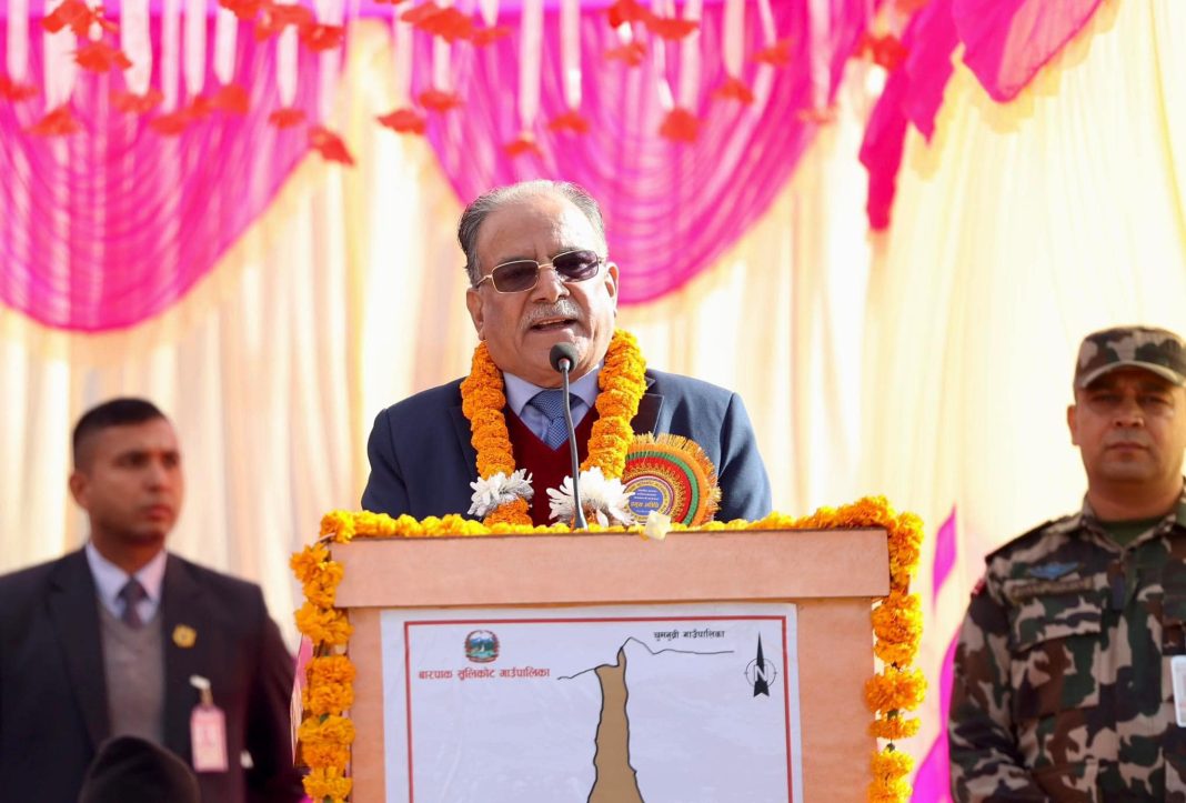 गोरखा ।। प्रधानमन्त्री पुष्पकमल दाहाल ‘प्रचण्ड’ले संघीय लोकतान्त्रिक गणतन्त्रका विरोधी शक्तिहरू अहिले जनतालाई भ्रमित पार्ने षड्यन्त्रमा लागेको बताएका छन् । नेकपा (माओवादी केन्द्र) विशेष रुपान्तरण अभियान अन्तर्गत गोरखाको बारपाक सुलिकोट गाउँपालिका–८ मा पार्टीको वडा समितिको बैठकलाई आज सम्बोधन गर्दै उनले यस्तो बताएका हुन् । जनतालाई निराश बनाउन गणतन्त्रविरुद्ध भ्रम फैलाउने षड्यन्त्र गणतन्त्र विरोधीबाट भइरहेको उनको भनाइ छ । ‘जनतालाई निराश हुनबाट तपाई हामी सबैले बचाउनुपर्छ’, उनले भने, ‘एकथरी व्यक्ति सरकारबाट भएका राम्रा काम पनि देख्न नसक्ने, जनतालाई नदेखाउने र सकारात्मक कुनै पनि कुरा नगर्ने, खाली नकारात्मक मात्र कुरा गर्ने तथा जनतालाई निराश पार्ने षड्यन्त्र गरिरहेका छन् ।’ प्रधानमन्त्री दाहालले गणतन्त्र विराधी गतिविधि रोक्न जनतालाई सम्झाउनु बुझाउनुपर्नेमा जोड दिए । उनले विशेष रुपान्तरण अभियान चलाउनुको मुख्य उद्देश्य पार्टीलाई गतिशील र चलायमान बनाउन मात्र नभई जनतासँगको सम्बन्ध सुदृढ गर्नुका साथै ठूलो बलिदानीपछि भएको परिवर्तनको रक्षा गर्नु पनि रहेको बताए । माओवादी केन्द्रका अध्यक्षसमेत रहेका उनले अभियानको उद्देश्य अनुसार देशैभर सफल भएको समेत दाबी गरे ।