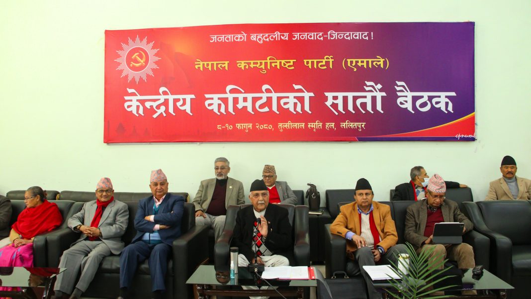 नेकपा एमाले केन्द्रीय समिति बैठकलाई मंगलवार पार्टी कार्यालय च्यासलमा सम्बोधन गर्दै ओलीले राष्ट्रिय सभा निर्वाचनमा एमालेलाई केही सिट दिने नाममा नाजायज तर्क राखेको बताएका हुन् ।