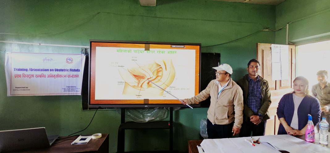 कार्यक्रममा प्रसव फिस्टुला के हो, यसका कारण, लक्षण र बच्चने उपाय वारे जनस्वास्थ्य सरोकार ट्रष्ट (फेक्ट नेपाल)का डा. बसन्त महर्जन र डा. तारा साक्यले प्रशिक्षण दिएका थिए ।