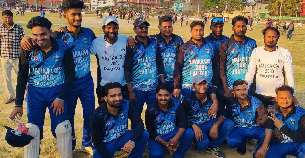 राैतहट ।। रौतहट जिल्लामा शनीवार देखि पालिका कप क्रिकेट प्रतियोगिता शुरू भएको पालिका कपको पहिलो खेलमा रौतहटको दुर्गाभगवती गाउपालिकको टीम विजयी शुरुवात गरेको छ ! टॉस जितेर पहिलो बल्लेबाजी गरेका दुर्गा भगवती टीमले निर्धारित २० ओभरको खेलमा ८ विकेट को क्षतिमा १२९ रन को स्कोर खड़ा गरेको थियो !