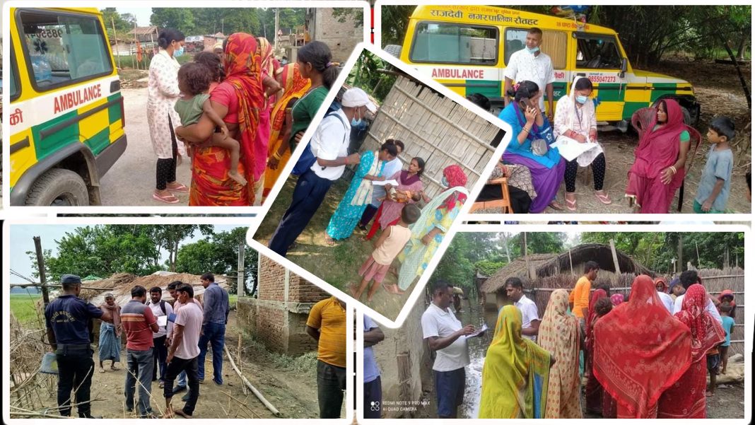 बाढीका कारण फैलिन सक्ने महामारी तथा स्वास्थ्य समस्याको निवारणका लागि दुईवटा च्बउष्म च्भकउयलकभ त्भबm समेत परिचालन गरी नगरवासी माँझ पुर्याइएको प्रमुख प्रशासकीय अधिकृत प्रलव कायस्थले जनाकारी दिनु भएको हो । अधिकृत कायस्थका अनुसार, टोलीले पीडितहरूको स्वास्थ्य अवस्था, क्षति, र आवश्यकताहरूको विवरण संकलन गरिरहेको छ, जसको आधारमा उपयुक्त सहयोग र क्षतिपूर्ति प्रदान गरिनेछ बताउदै, यो प्रक्रिया पूरा भएपछि विस्तृत विवरण सार्वजनिक गरिनेछ, र त्यसपछि प्रभावितहरूलाई अझ प्रभावकारी रूपमा सहयोग गर्न सकिने अधिकृत कायस्थले बताए । यस कार्यमा सवै नगरवासीले सहयोग गर्न राजदेवी नगरपालिकाले अनुरोध समेत गरेको छ ।