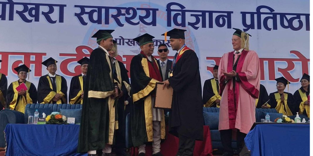 ‘हामी उठन् नसक्ने कुनै कारण छैन। हामी सूचना प्रविधि र आर्टिफिसियल इन्टेलिजेन्सको सदुपयोग गर्दै विकासमा अगाडि बढ्नेछौँ,’ प्रधानमन्त्री ओलीले भने,‘चीनले त्यत्रो जनसंख्यालाई छोटो समयमा गरिबीको रेखामुनिबाट उठायो। हामीले पनि हाम्रो देश आफैँ बनाउन लाग्नुपर्छ । लागेपछि नेपाल बन्छ ।’ प्रतिष्ठानबाट एमडी र एमएसमा उतीर्ण ३८ विद्यार्थी दीक्षित भएका छन्। कुलपति ओलीले उत्कृष्ट विद्यार्थी अरविन्दकुमार साह (अर्थोपेडिक्स) र आशिष सापकोटा (जनरल सर्जरी) लाई उपकुलपति पदक वितरण गरे ।