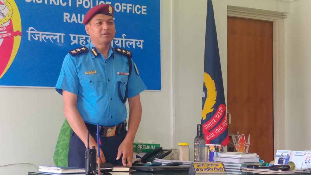 रौतहट ।। रौतहट नयाँ प्रहरी उपरीक्षक (एसपी) नेत्रमणि गिरीले आफू कुनै राजनीतिक या अन्य प्रभावकाे कारणले राैतहट आएकाे नभई नियमित प्रशासनिक प्रक्रियामार्फत आएकाे स्पष्ट पारेका छन्। जिल्ला प्रहरी कार्यालय राैतहटद्वारा आयोजित परिचयात्मक कार्यक्रममा उनले भने, “म कसैकाे साेर्समा अाएकाे हैन। यदि राैतहट अाएकाे हुने भएन भने म महोत्तरी वा सर्लाही जान्थेँ।”पत्रकारहरूकाे जिज्ञासामा जवाफ दिंदै एसपी गिरीले अपराध नियन्त्रण, शान्ति सुरक्षा कायम राख्न र नागरिकलाई न्याय दिलाउन आफु प्रतिवद्ध रहेकाे बताए। उनले भने, “पिडितलाई अन्याय हुन दिन्न। कसैलाई दुख दिने मेरो उदेश्य छैन। निर्दोषलाई दुःख दिने काम नगराैँ।”उनले जिल्लामा तस्करी नियन्त्रणलाई प्राथमिकतामा राखिने जनाउँदै भने, “तस्करी नियन्त्रण गर्नु हाम्रो कर्तव्य हो। यो सशस्त्र प्रहरीकाे पनि जिम्मेवारी हाे, तर यदि कसैले तस्करीजन्य काम गरेका छन् भने हामी टुलु टुलु हेरेर बस्दैनौँ। कारबाही गर्छाैँ।”